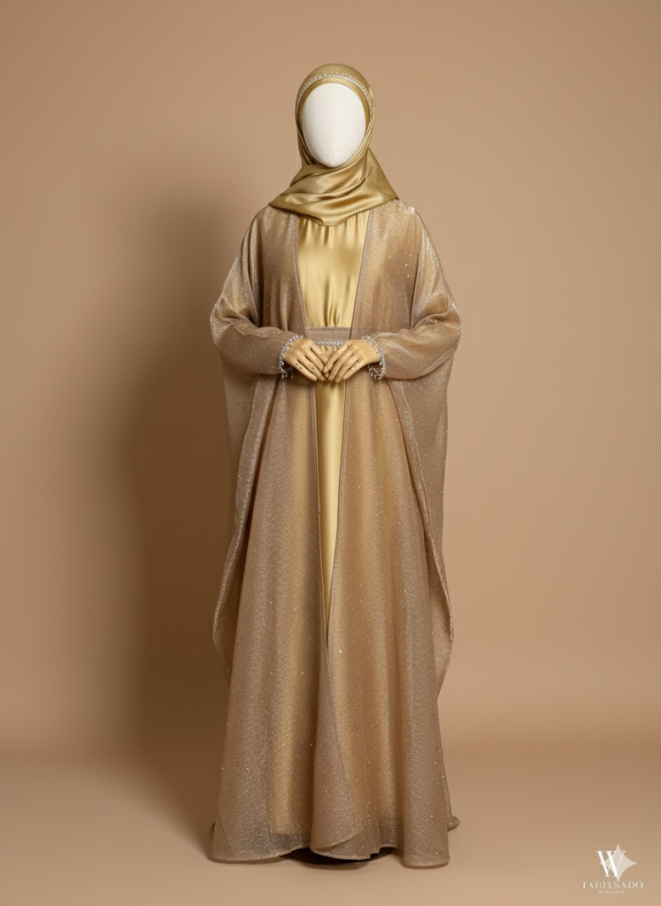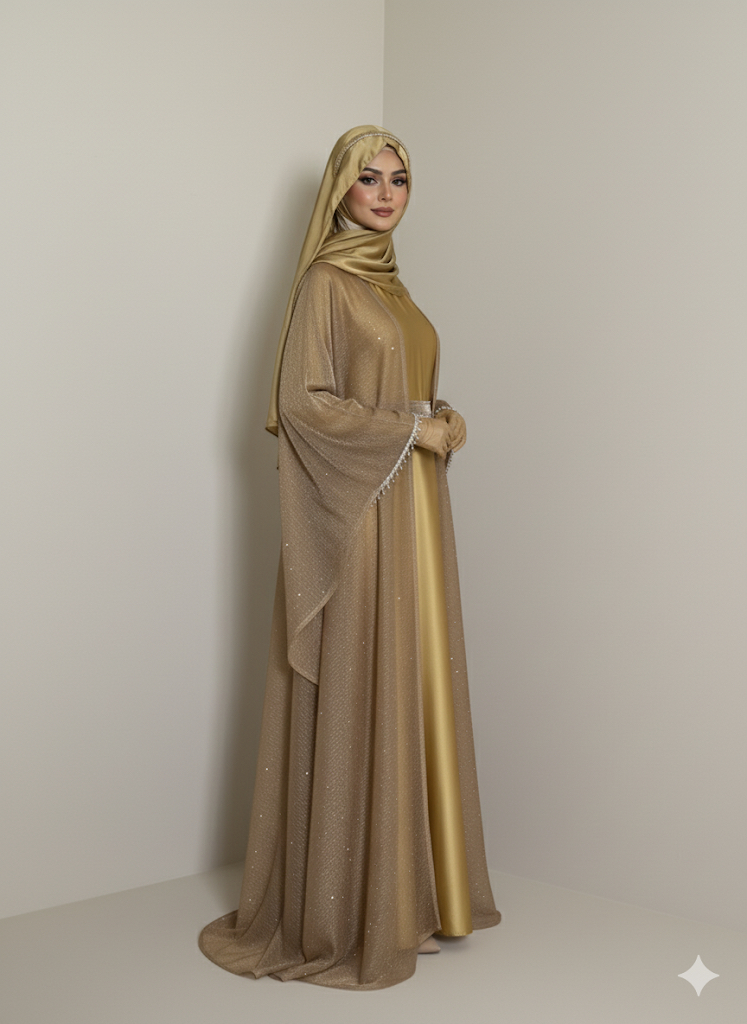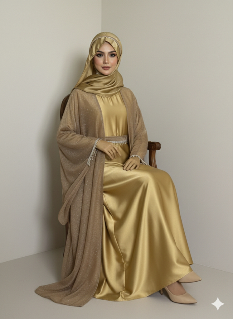 The Stone Kaftan Abaya is a true statement of elegance — combining soft silk textures with dazzling stone embellishments. Designed for the woman who values both modesty and modern sophistication, this abaya is the epitome of refined luxury.